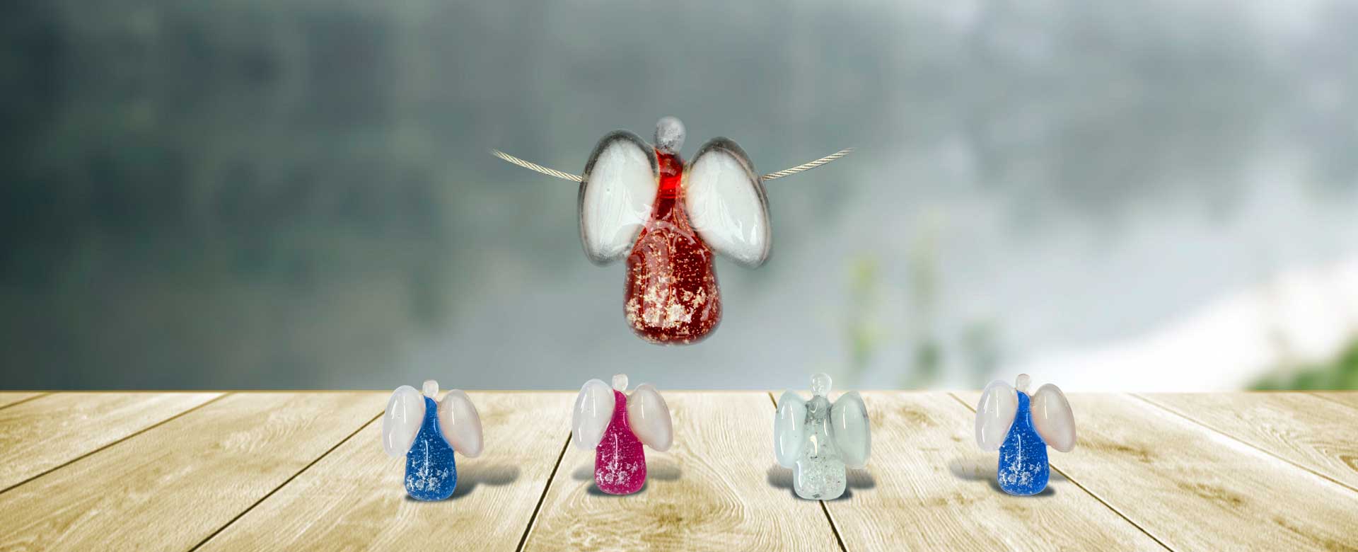 - Engel Anhänger mit eingeschmolzener Asche, in verschiedenen Farben erhältlich